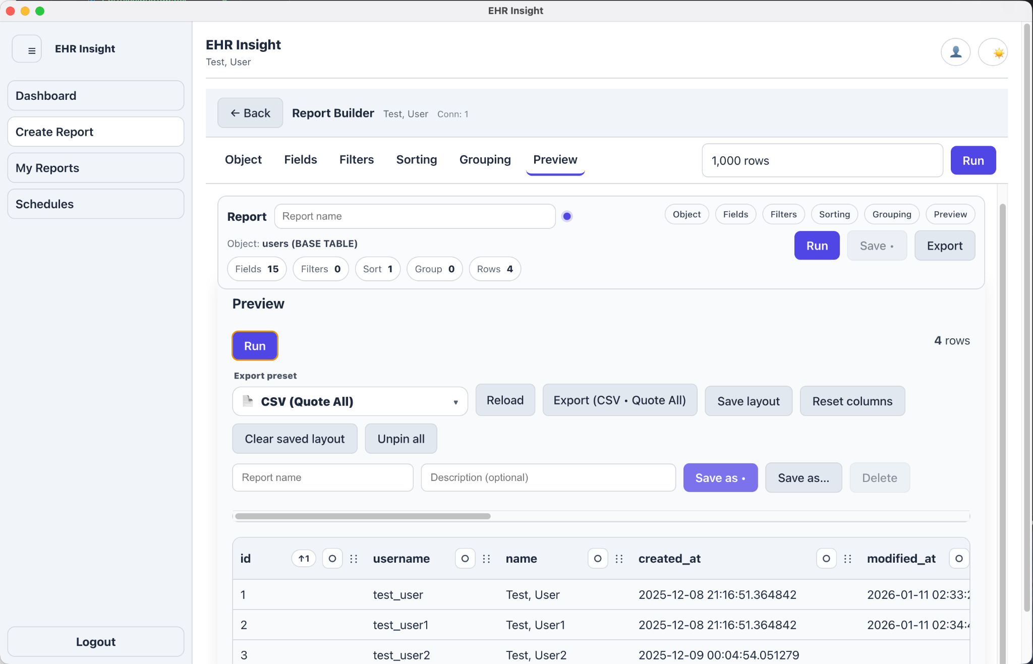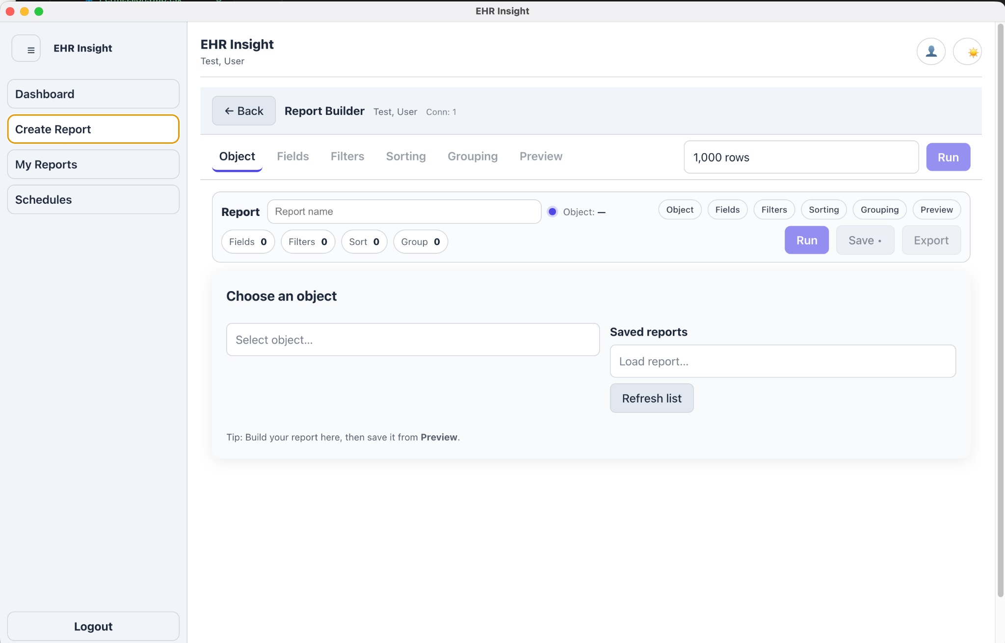 EHR Insight helps your team build, run, and export reports — while keeping access controlled, auditable, and secure for IT.